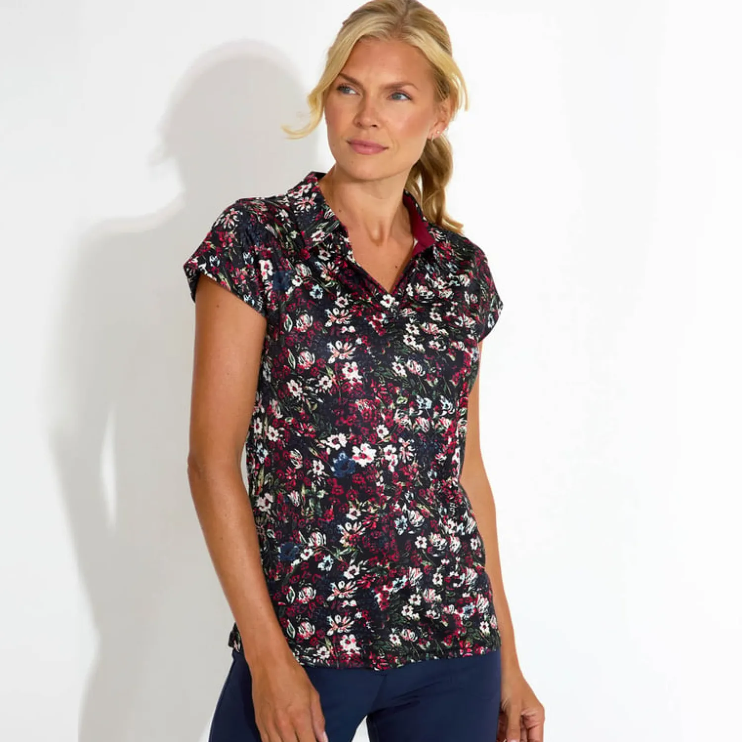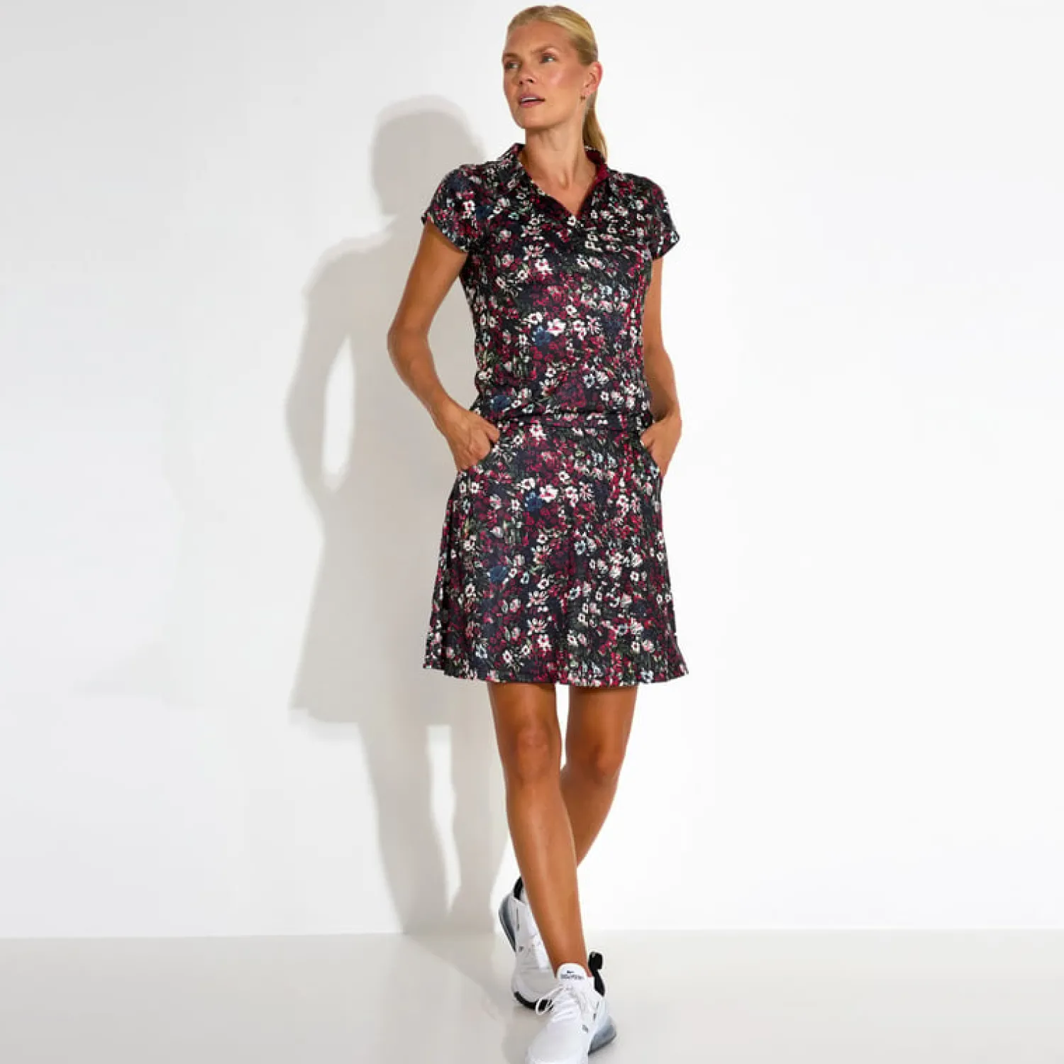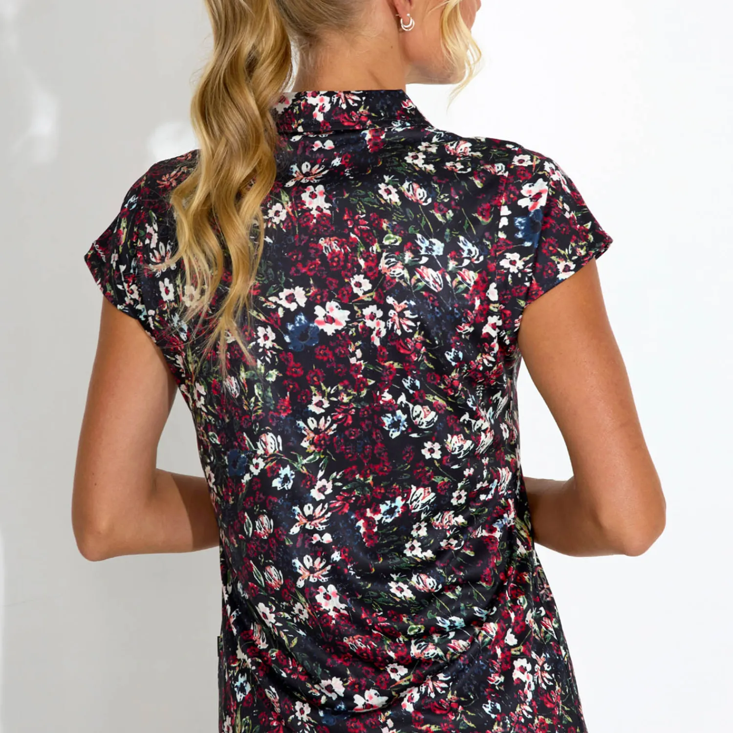 Bogeys & Birdies Pikétröjor Dam-W Tech Hidden Button Pique AOP Svart Vit Black/White (Zebra)
