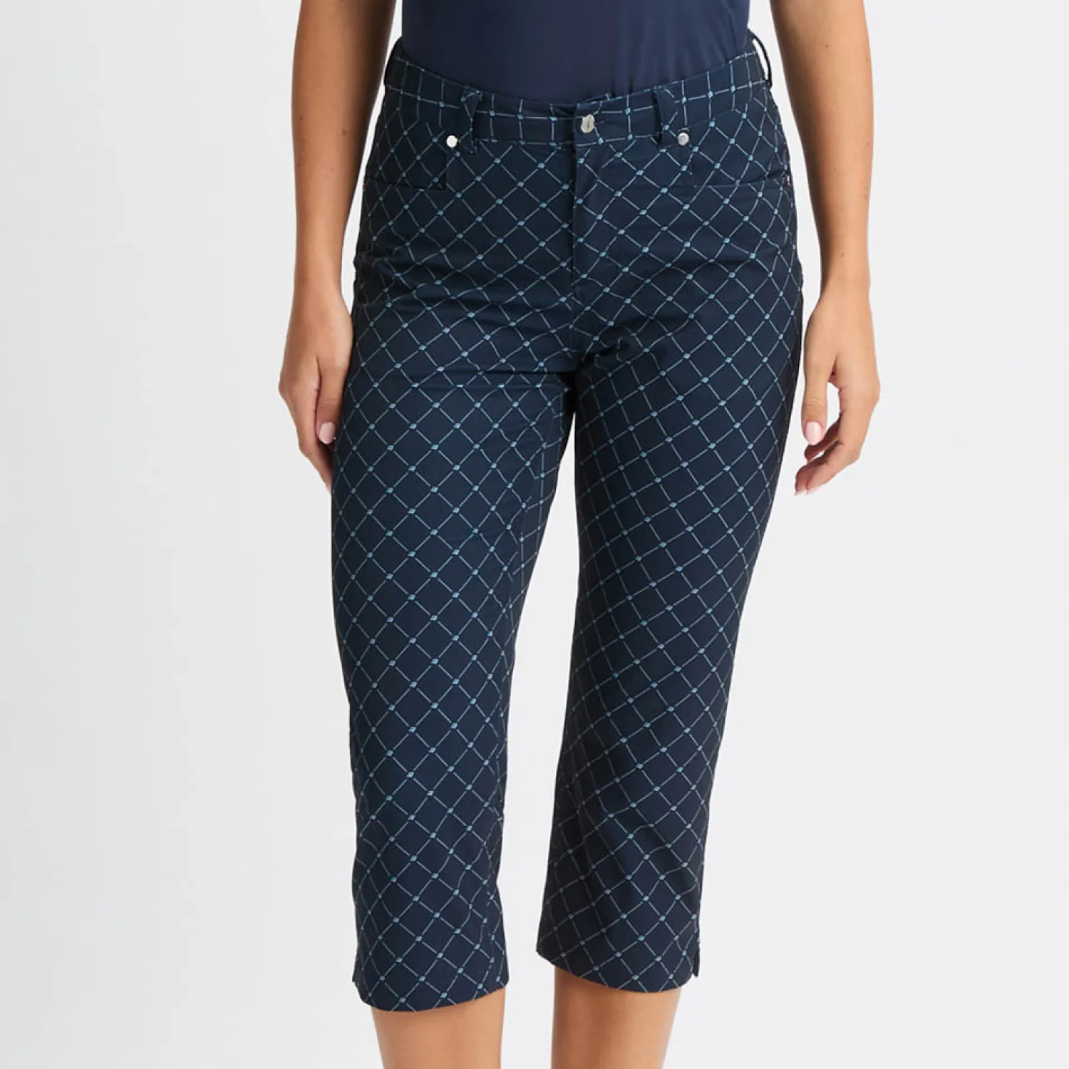 Röhnisch Capribyxor Dam-Chie Comfort Capri Micro-R-Check-Navy