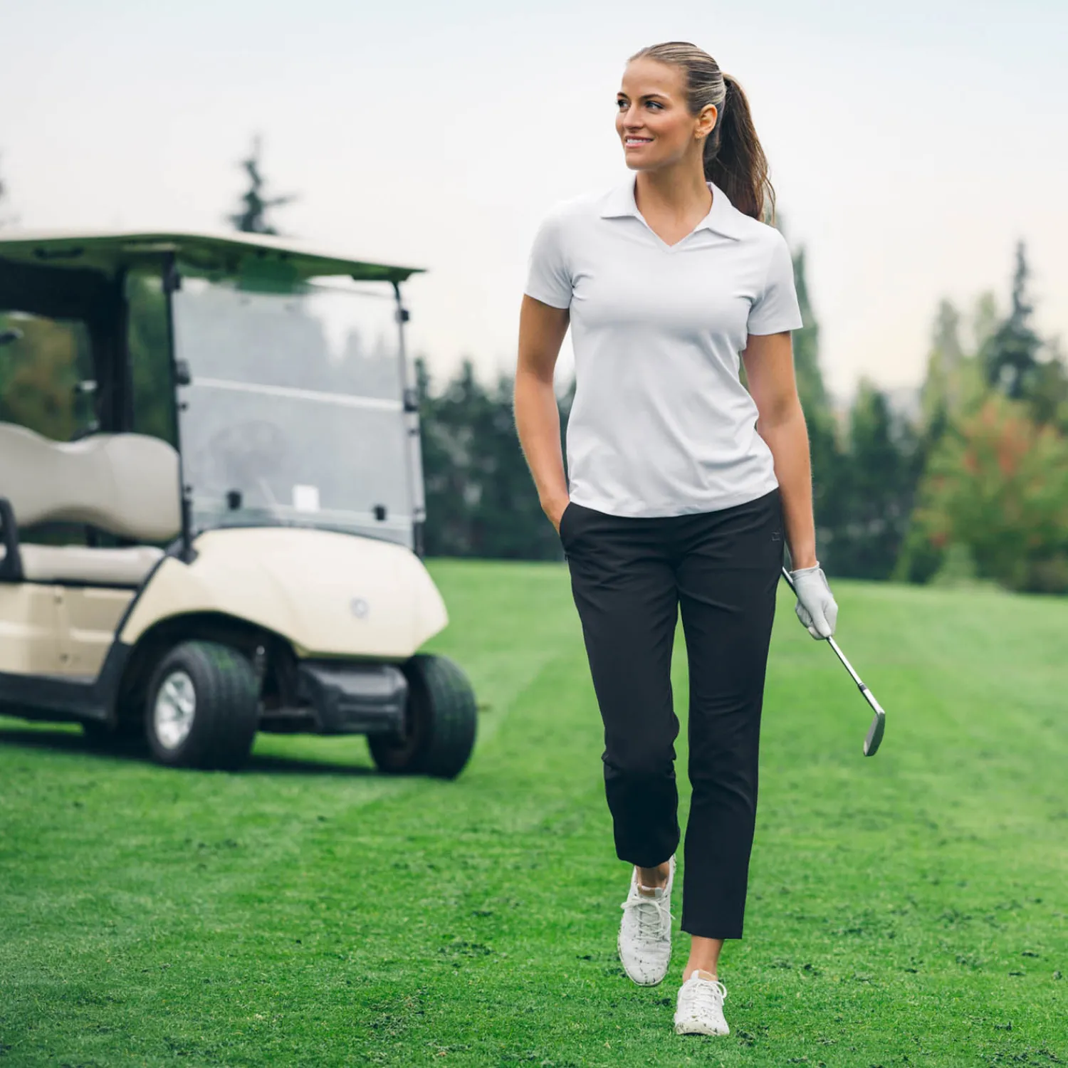 Bogeys & Birdies Pikétröjor Dam-W Tech Hidden Button Pique AOP Svart Vit Black/White (Zebra)
