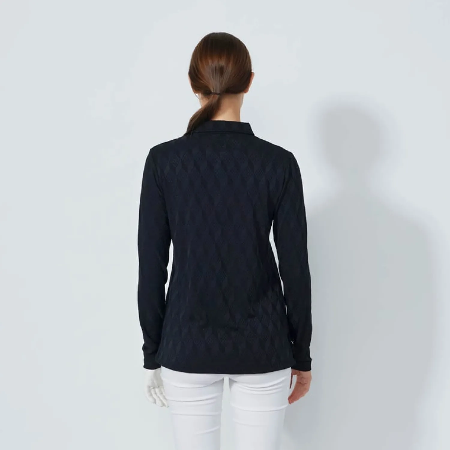 Daily Sports Tröjor Dam-Graphic Jaquard Ls Poloshirt Svart Black