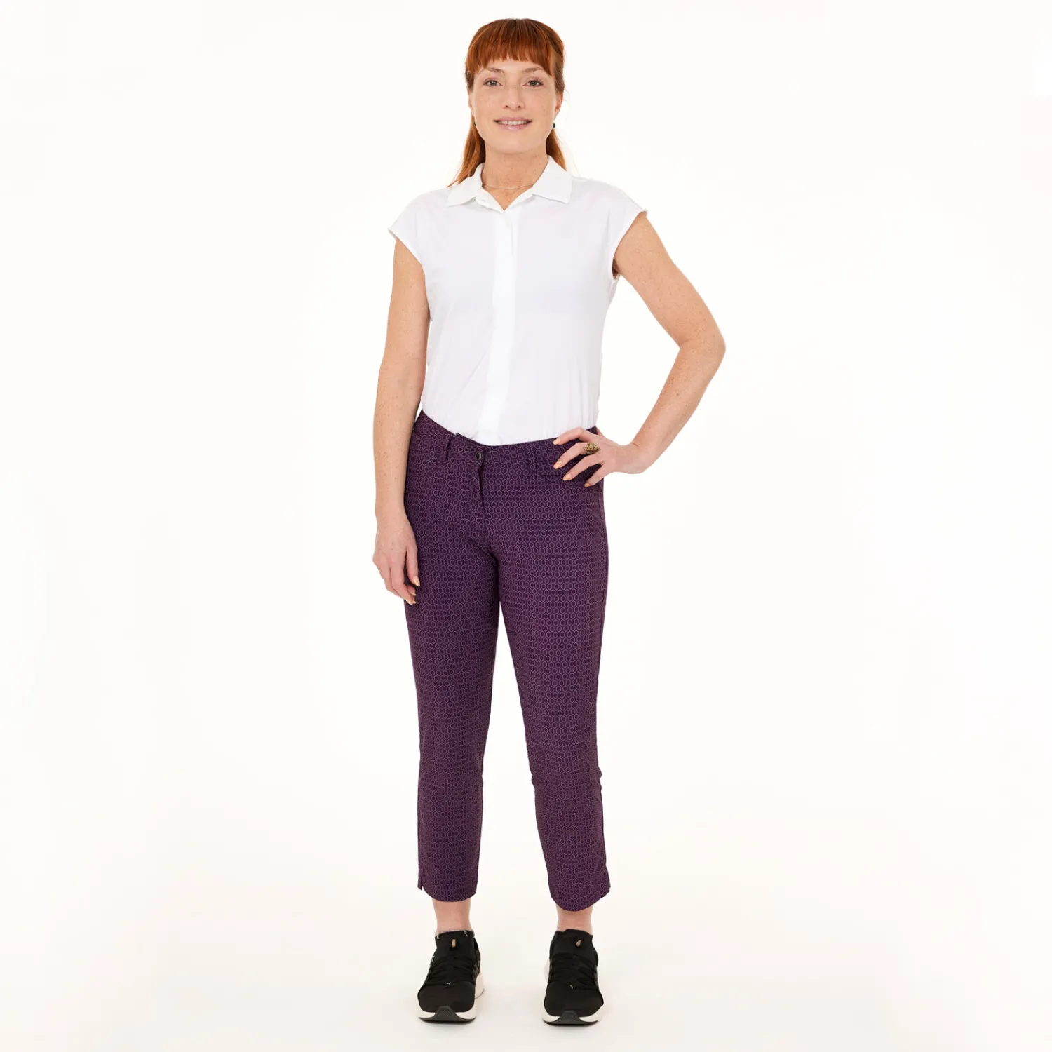 Bogeys & Birdies Pikétröjor Dam-W Tech Hidden Button Pique AOP Svart Vit Black/White (Zebra)