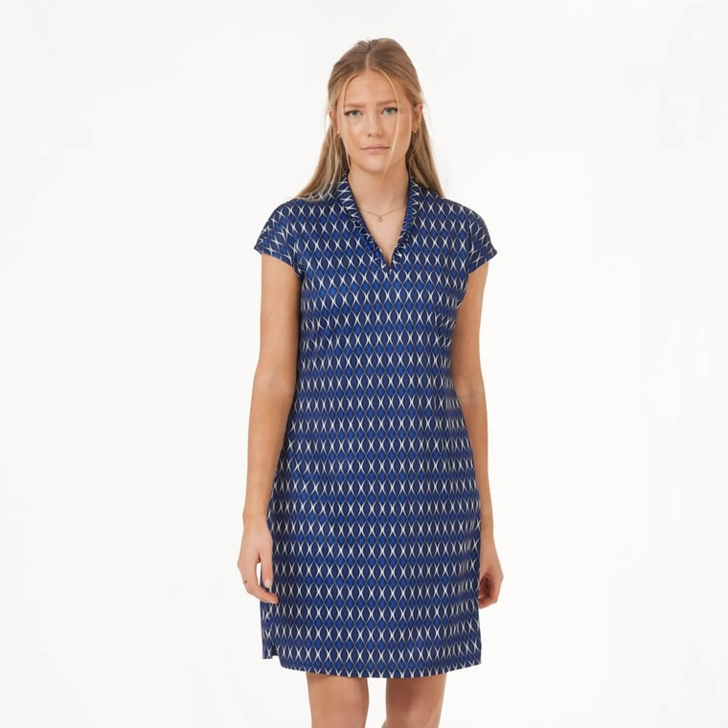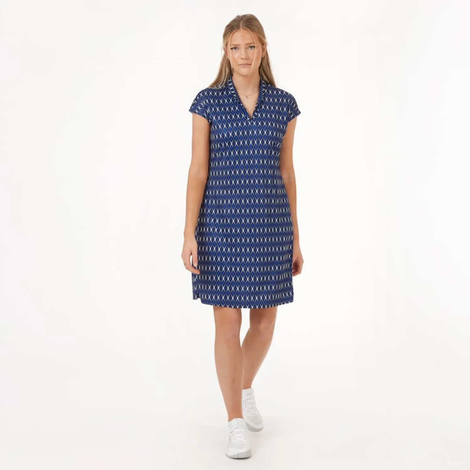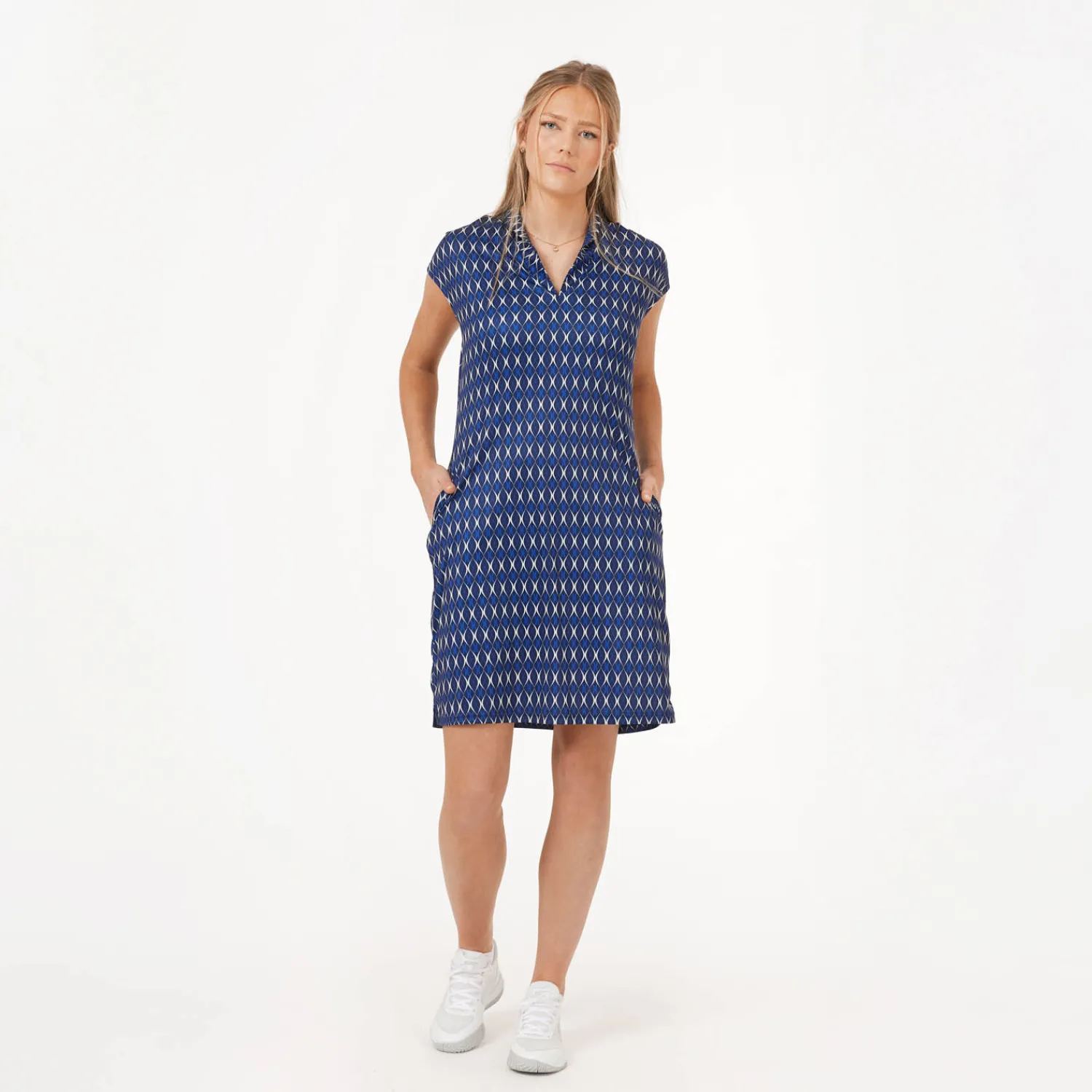 Bogeys & Birdies Pikétröjor Dam-W Tech Hidden Button Pique AOP Svart Vit Black/White (Zebra)